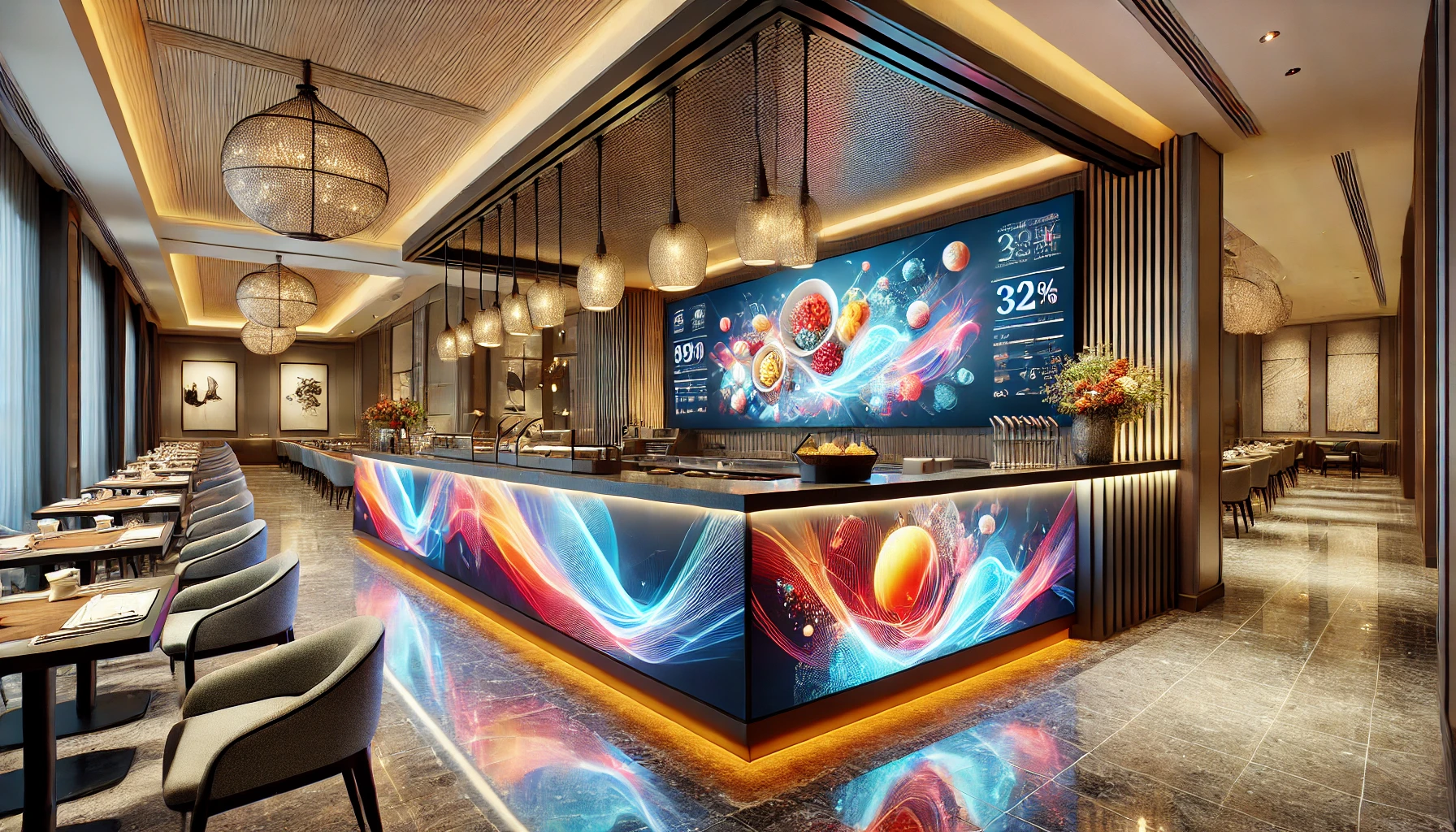 - هتلها و مراکز اقامتی: میز کانتر ال ای دی ویدئو وال میتواند در لابی هتلها برای نمایش اطلاعات مربوط به خدمات هتل، برنامههای ویژه و تبلیغات استفاده شود.