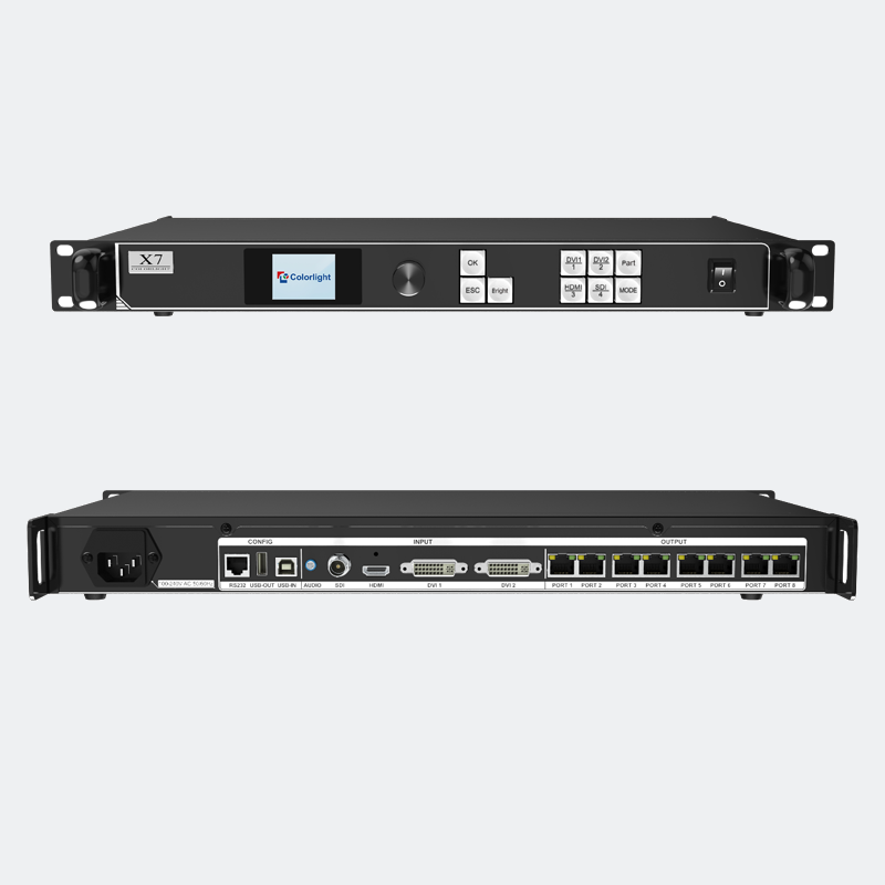 ویدیو پروسسور Colorlight X7 یک دستگاه پردازش ویدیوی پیشرفته با پشتیبانی از 4K، 8 خروجی مستقل، پردازش رنگ 16 بیتی و مدیریت هوشمند. انتخابی ایده‌آل برای ویدیووال‌های حرفه‌ای، کنترل روم‌ها و استودیوهای پخش.