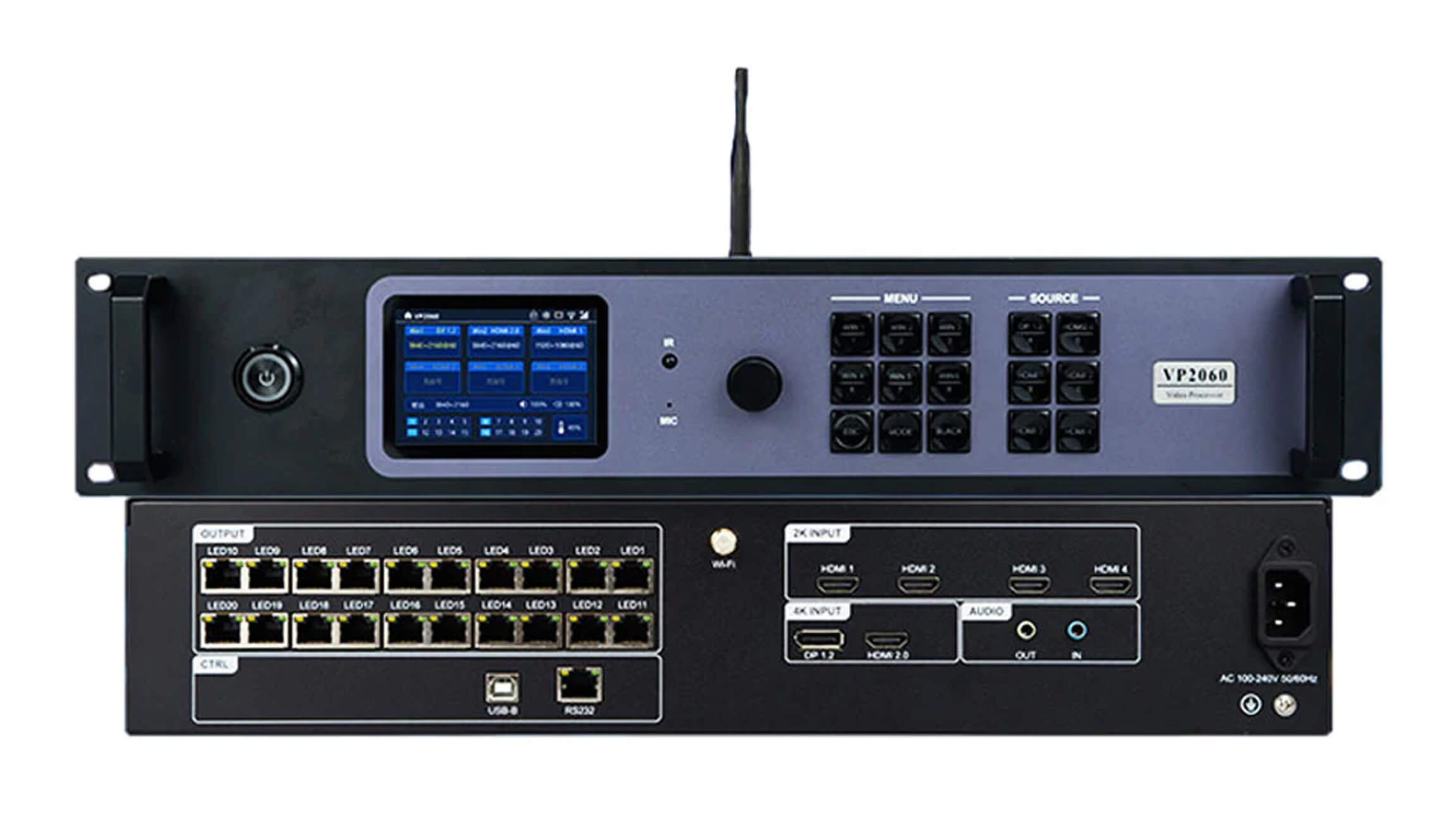خرید ویدیو پروسسور Huidu مدل VP2060؛ پردازنده قدرتمند با پشتیبانی از رزولوشن 4K و ورودی‌های متنوع. مناسب برای نمایشگرهای LED بزرگ با قابلیت مدیریت پیکسل بالا و پشتیبانی از کارت‌های دریافت سری T.